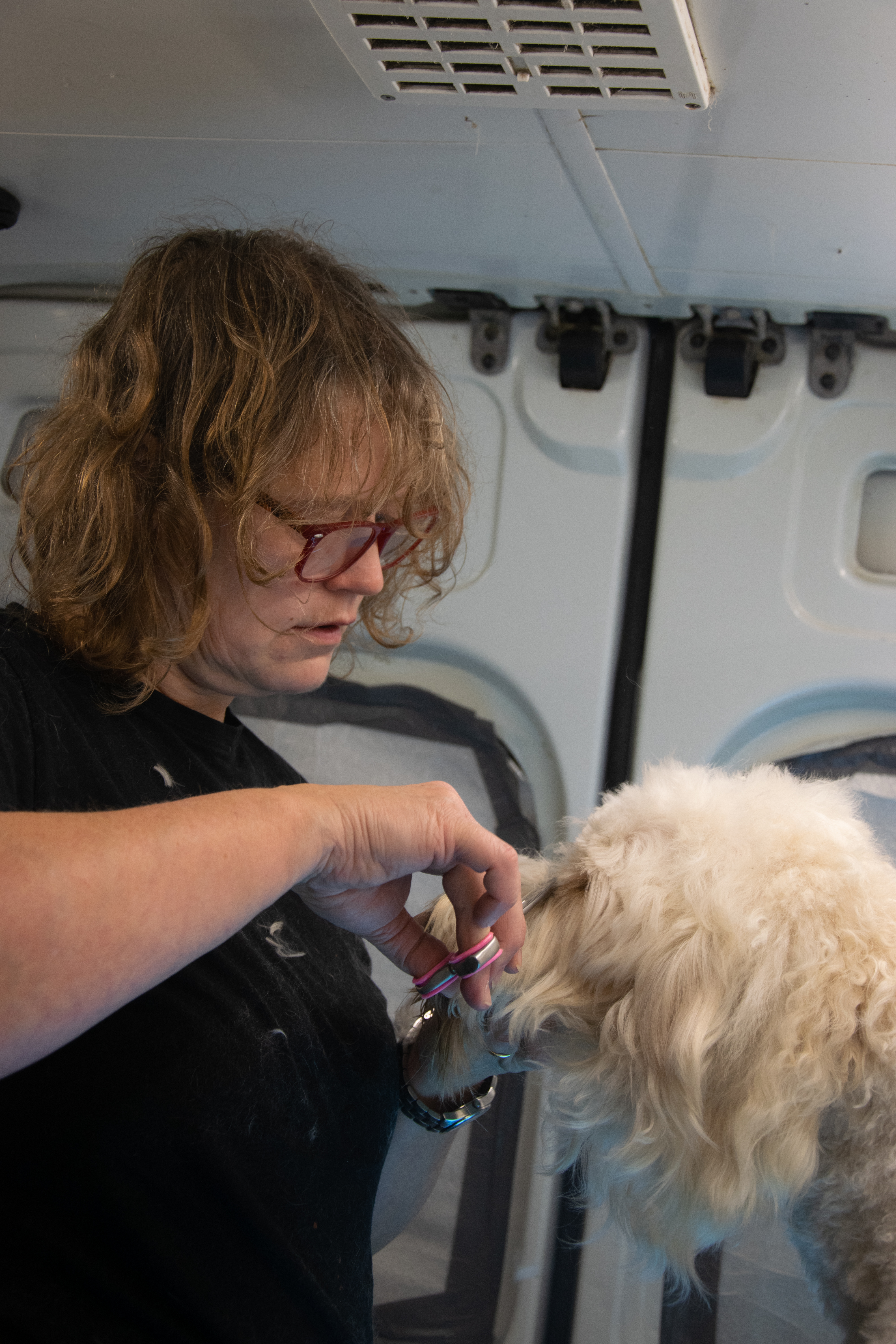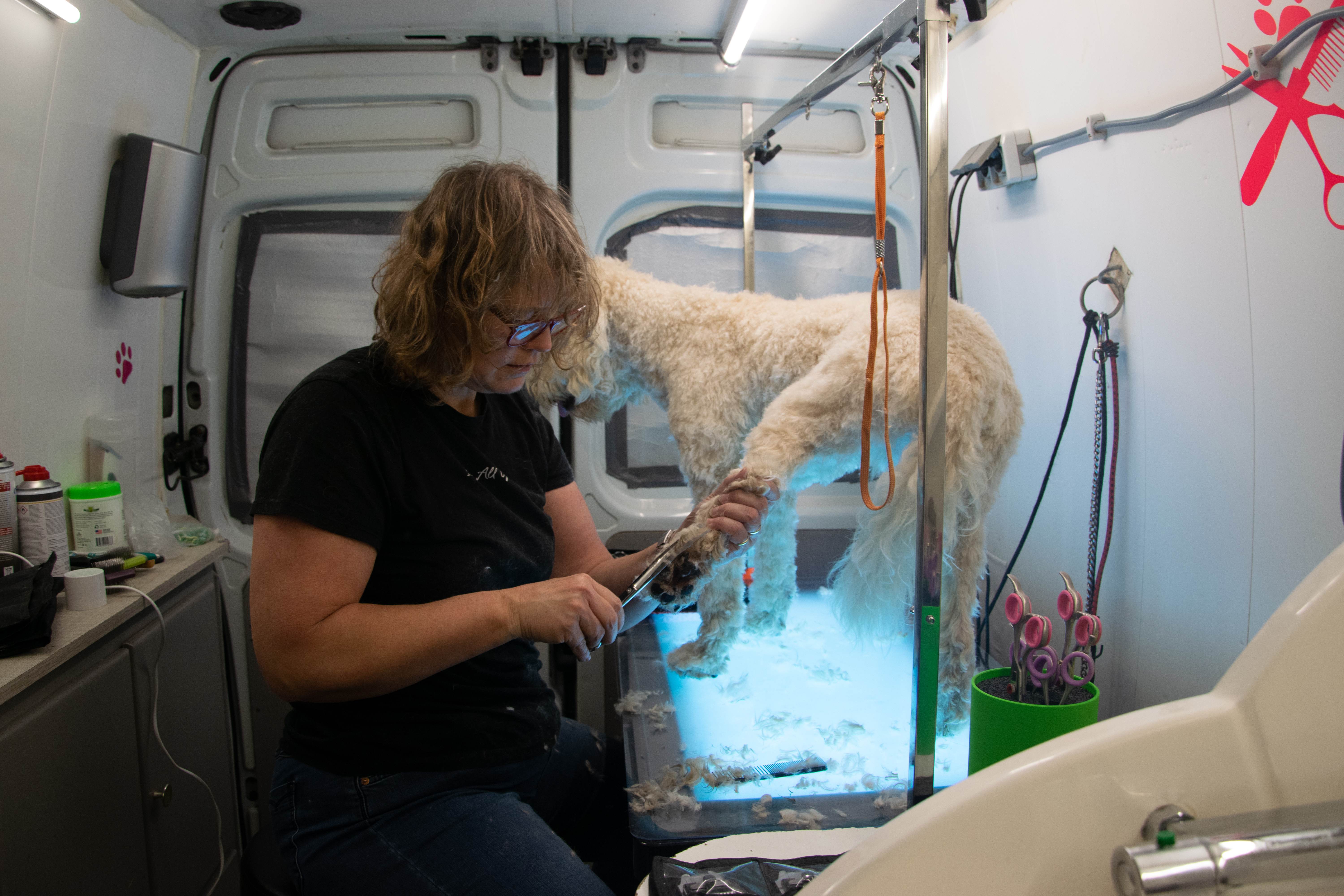 En nu heb ik een bus gekocht, waarin ik uw trouwe viervoeter kan trimmen. Ik heb er zin in.